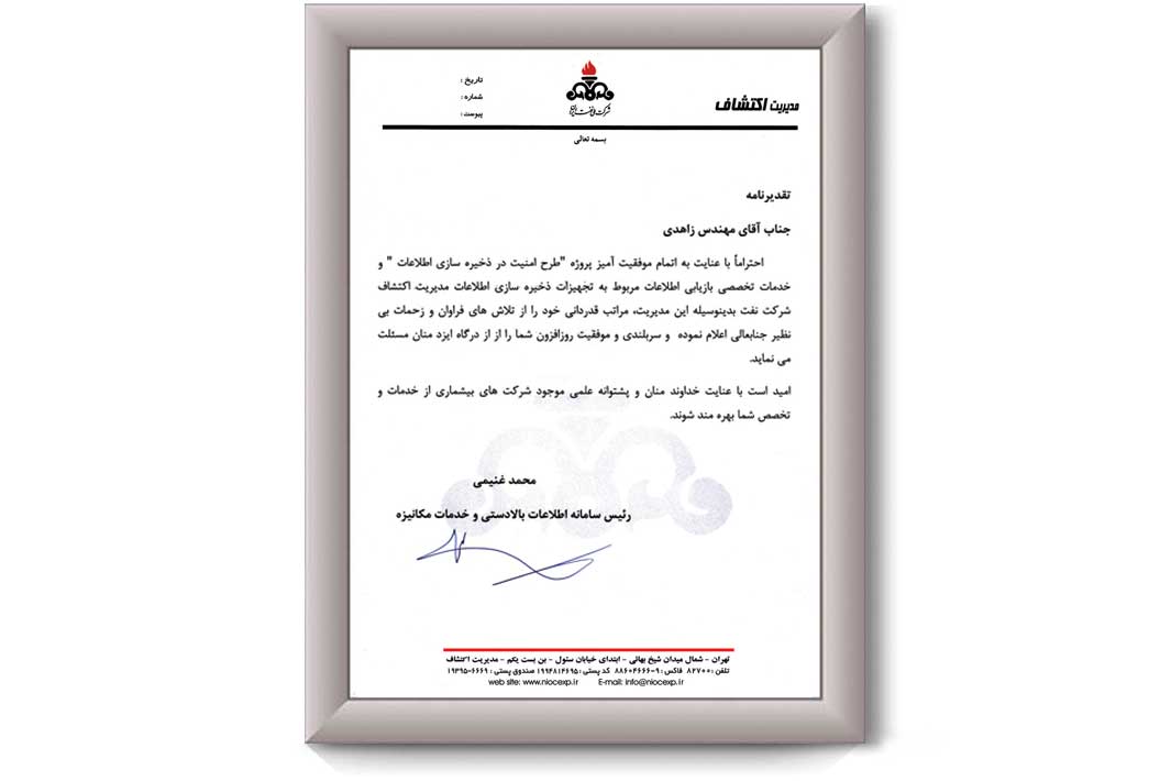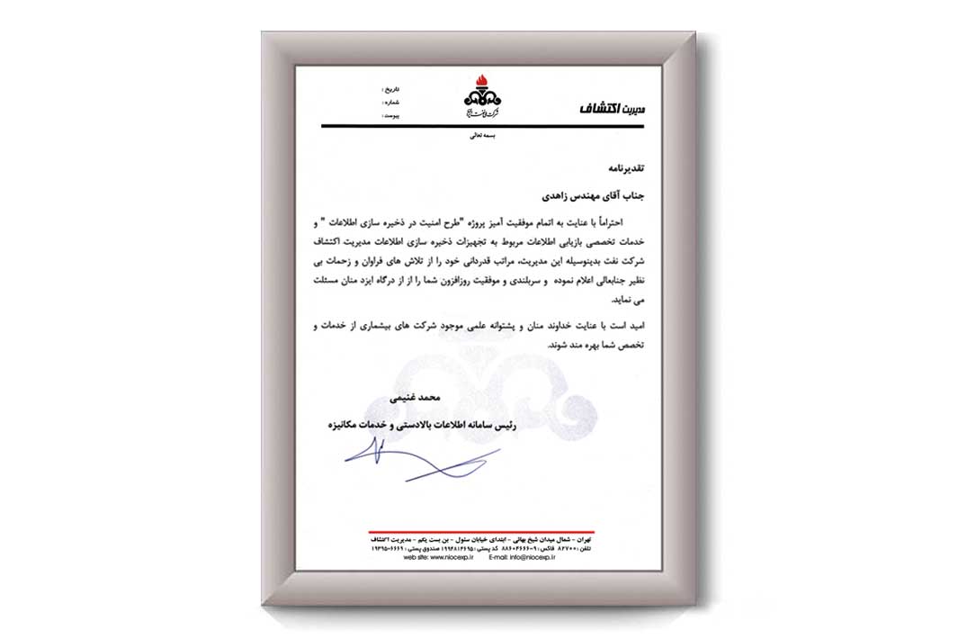 در این بخش میتوانید گواهینامههای رسمی رسانهافزار را مشاهده کنید. همچنین نمونهای از تقدیرنامههای مشتریان سازمانی، شرکتهای دولتی و خصوصی که کیفیت خدمات بازیابی اطلاعات حرفهای ما را به صورت کتبی تأیید کردهاند، در معرض دید قرار گرفته است. برای مشاهده جزئیات هر مدرک یا تقدیرنامه، لطفاً روی تصاویر زیر کلیک کنید. این مجموعه نمونه ایی از اعتماد و رضایت مشتریان و تخصص بالای تیم رسانهافزار است.